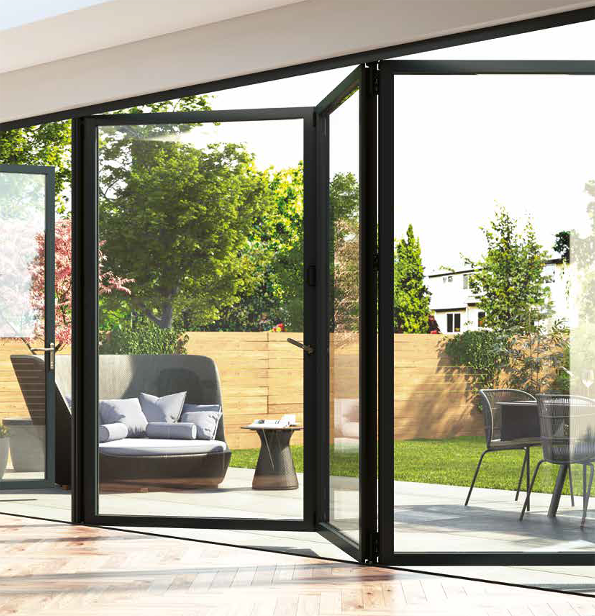 Precision-engineered for effortless glide and long-lasting performance, our bi-folding doors bring natural light, space, and elegance into any home. Slim sightlines, robust security, and exceptional thermal performance come as standard. Designed to perfection and built to last, these doors make indoor-outdoor living seamless.